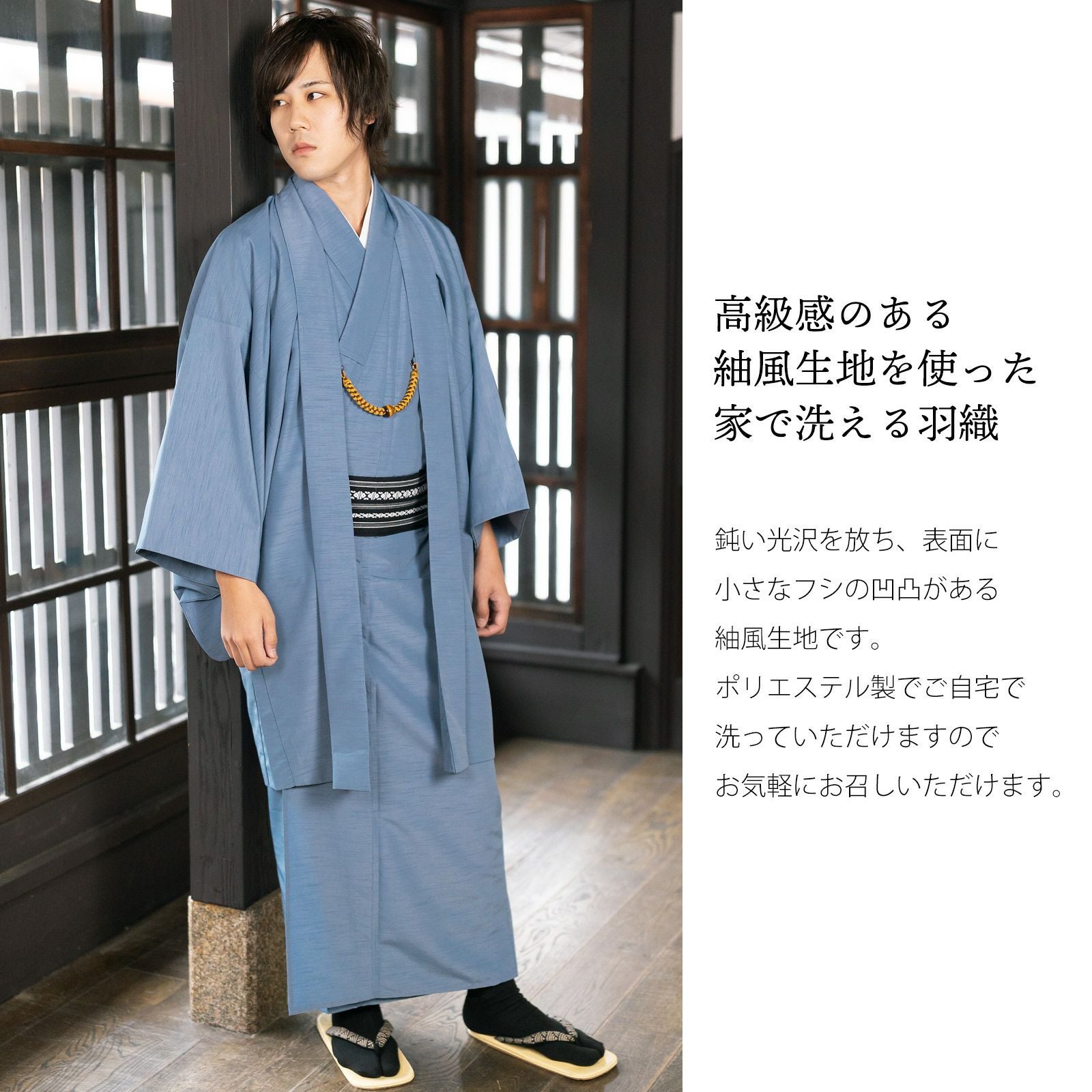 他の画像を見る 紬風のお洒落な男性羽織 羽織 男性 メンズ 洗える着物 単品「ブルーグレー」S/M/L/LL/3L はおり 男着物 男性用着物 男性着物 メンズ着物 お仕立て上がり ポリエステル着物 男羽織 プレタ着物 男着物単品 mens kimono haori【メール便不可】 きもの町価格 ¥ 7,150 税込 詳細を見る お気に入りに登録する