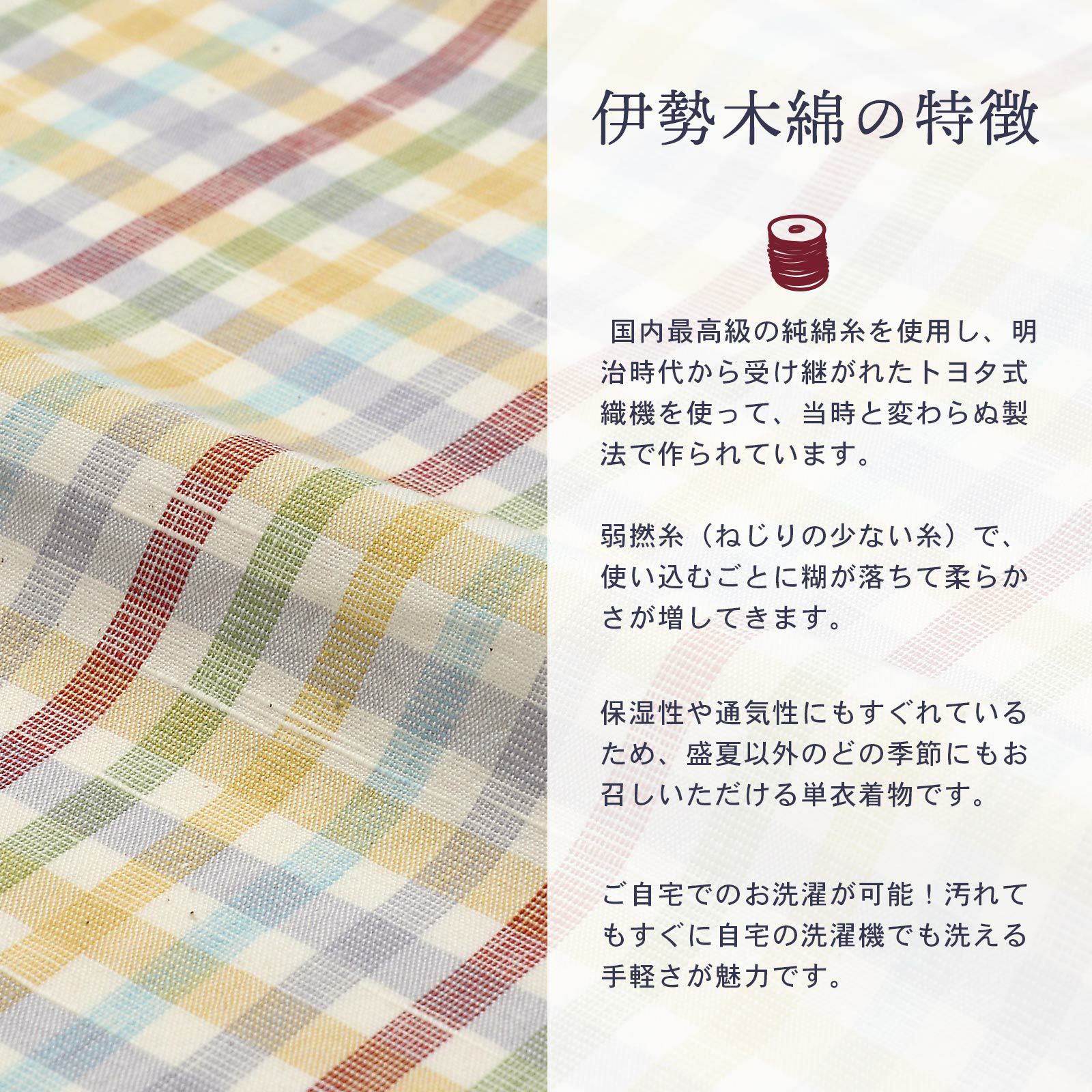 他の画像を見る 送料無料 やわらかく、どこかぬくもりが感じられる「伊勢木綿」の未仕立て着物 反物 伊勢木綿 洗える着物 反物 レディース「重ね格子 白×黄土色×紺」未仕立て 木綿きもの 日本製 三重県 伝統工芸品 単衣 綿 カジュアル 小紋 レディース【メール便不可】 きもの町価格 ¥ 39,600 税込 カートに入れる お気に入りに登録する