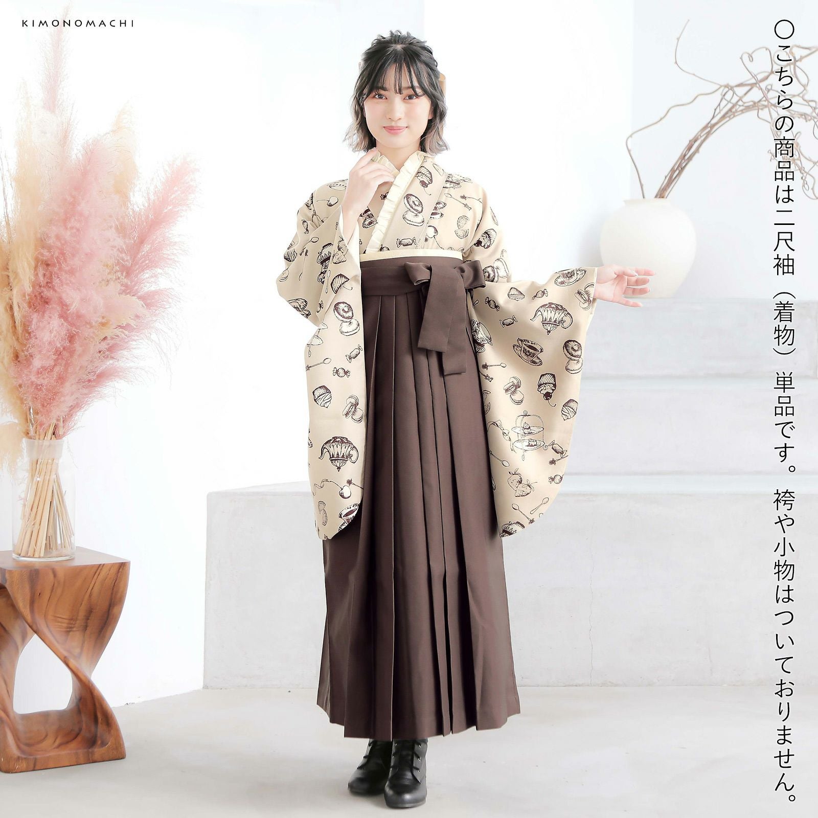 他の画像を見る 送料無料 KIMONOMACHI オリジナル! 個性派洗える二尺袖着物 レトロモダン 古典柄 (卒業式応援75%SALE 2/19迄)二尺袖着物 単品「アフタヌーンティー ベージュ」KIMONOMACHIオリジナル お仕立て上がり レディース 洗える着物 二尺袖 着物 袴に合わせて 卒業式 謝恩会に 短丈【メール便不可】ss2506kmn10 通常販売価格 ¥ 19,800 のところ きもの町価格 ¥ 16,500 税込 販売期間 2026/02/05 18:00 〜 2026/02/19 17:59 カートに入れる お気に入りに登録する