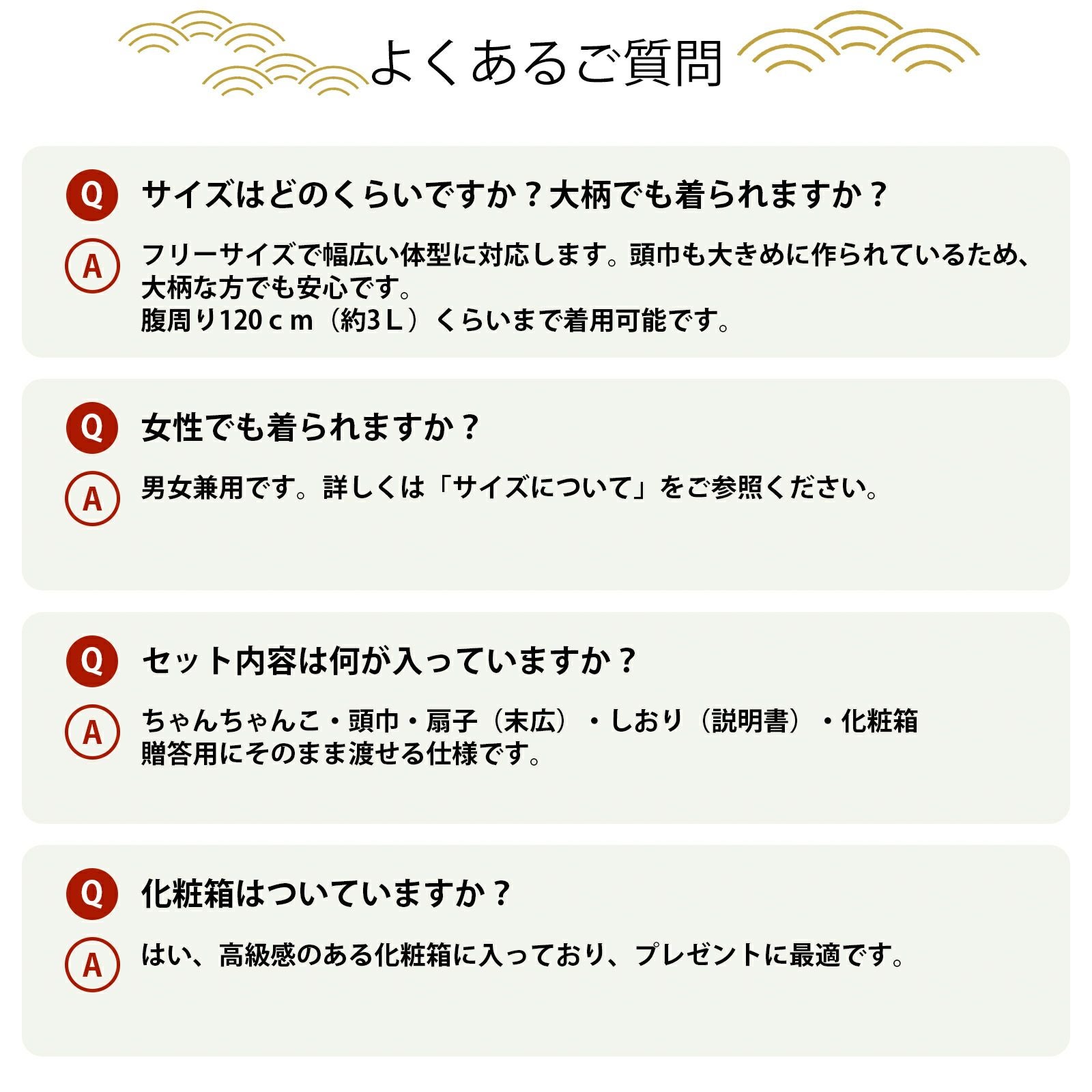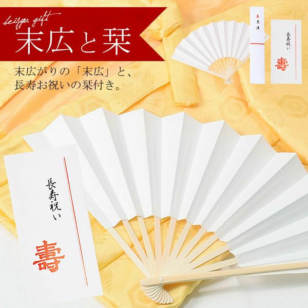 他の画像を見る 送料無料 【傘寿・米寿・卒寿】長寿のお祝いに ちゃんちゃんこ、頭巾のセット 傘寿・米寿・卒寿 頭巾、ちゃんちゃんこ、末広セット 「黄色」 長寿お祝い 熨斗、ラッピング無料 ギフト 贈り物 80、88、90歳のお祝いに【送料無料】【メール便不可】 きもの町価格 ¥ 3,850 税込 詳細を見る お気に入りに登録する