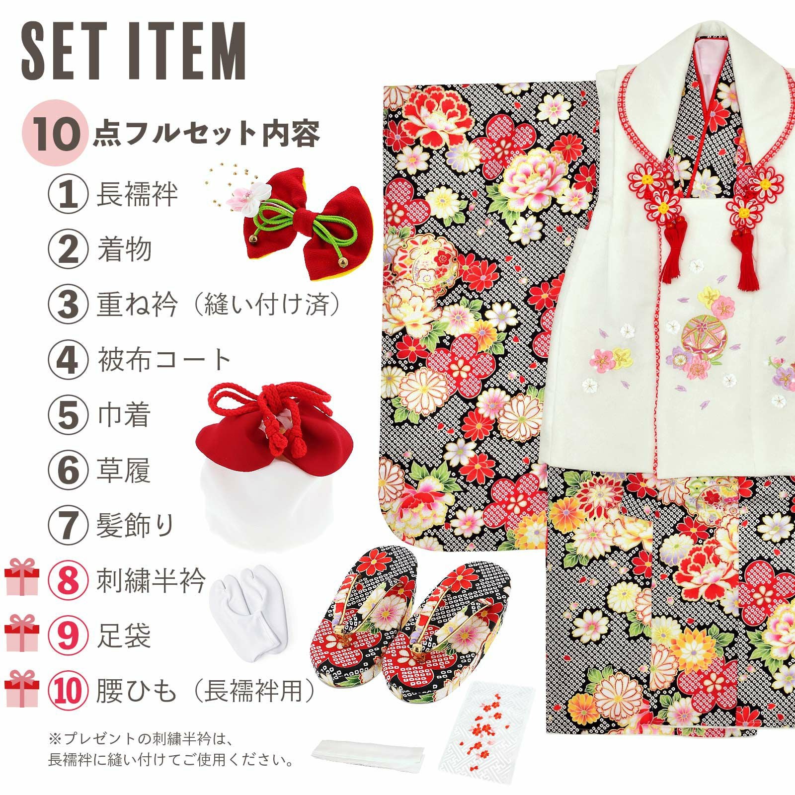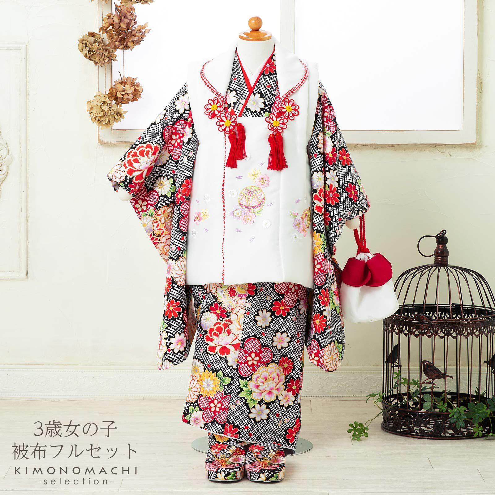 他の画像を見る 送料無料 3歳の女の子の七五三に 女児用被布セット お正月やひなまつり(桃の節句)にも 七五三 着物 3歳 女の子 「白×黒 菊、牡丹」 三歳女児被布セット 子供着物 フルセット 三才のお祝い着 3才向け 【メール便不可】 きもの町価格 ¥ 19,140 税込 カートに入れる お気に入りに登録する