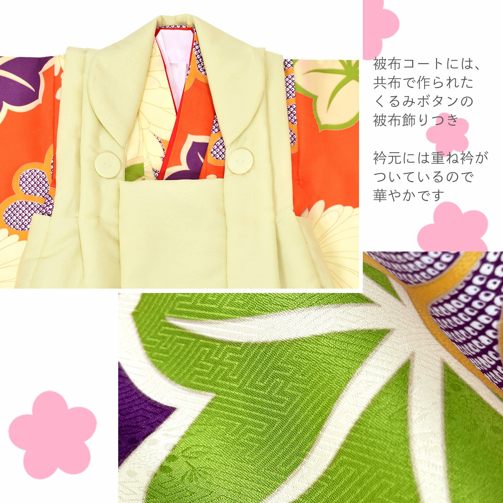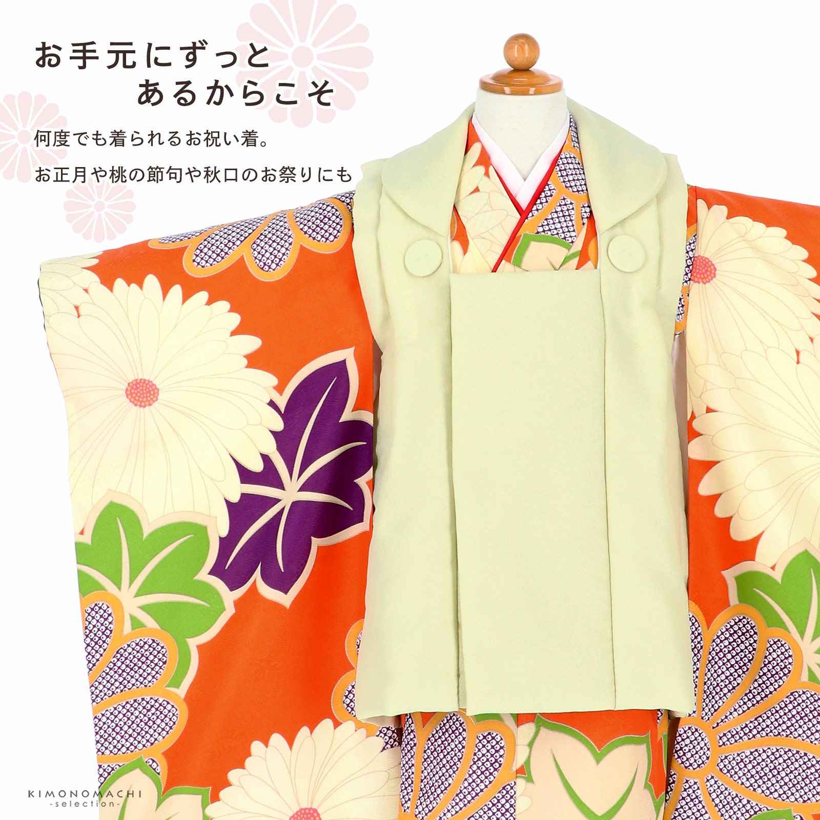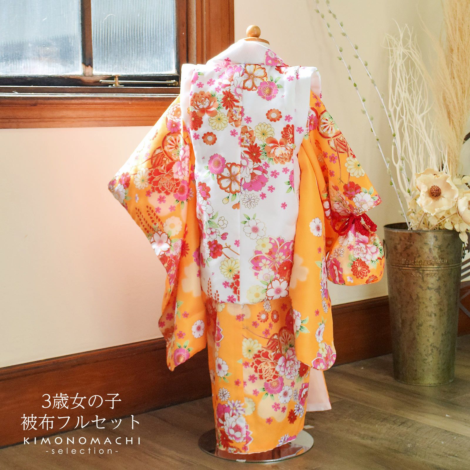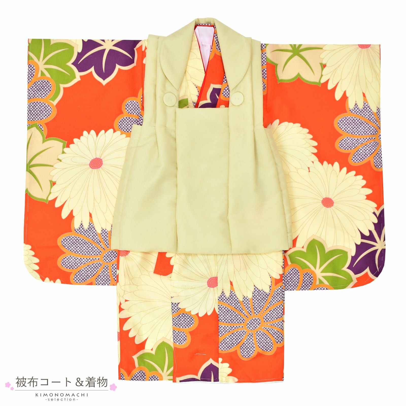 他の画像を見る 送料無料 3歳の女の子の七五三に 女児用被布セット お正月やひなまつり(桃の節句)にも 七五三 着物 3歳 女の子 被布セット「クリーム色 オレンジ 菊花、楓」三歳女児被布セット 子供着物 フルセット 三才のお祝い着 3才向け【メール便不可】 きもの町価格 ¥ 26,400 税込 在庫切れ カートに入れる お気に入りに登録する