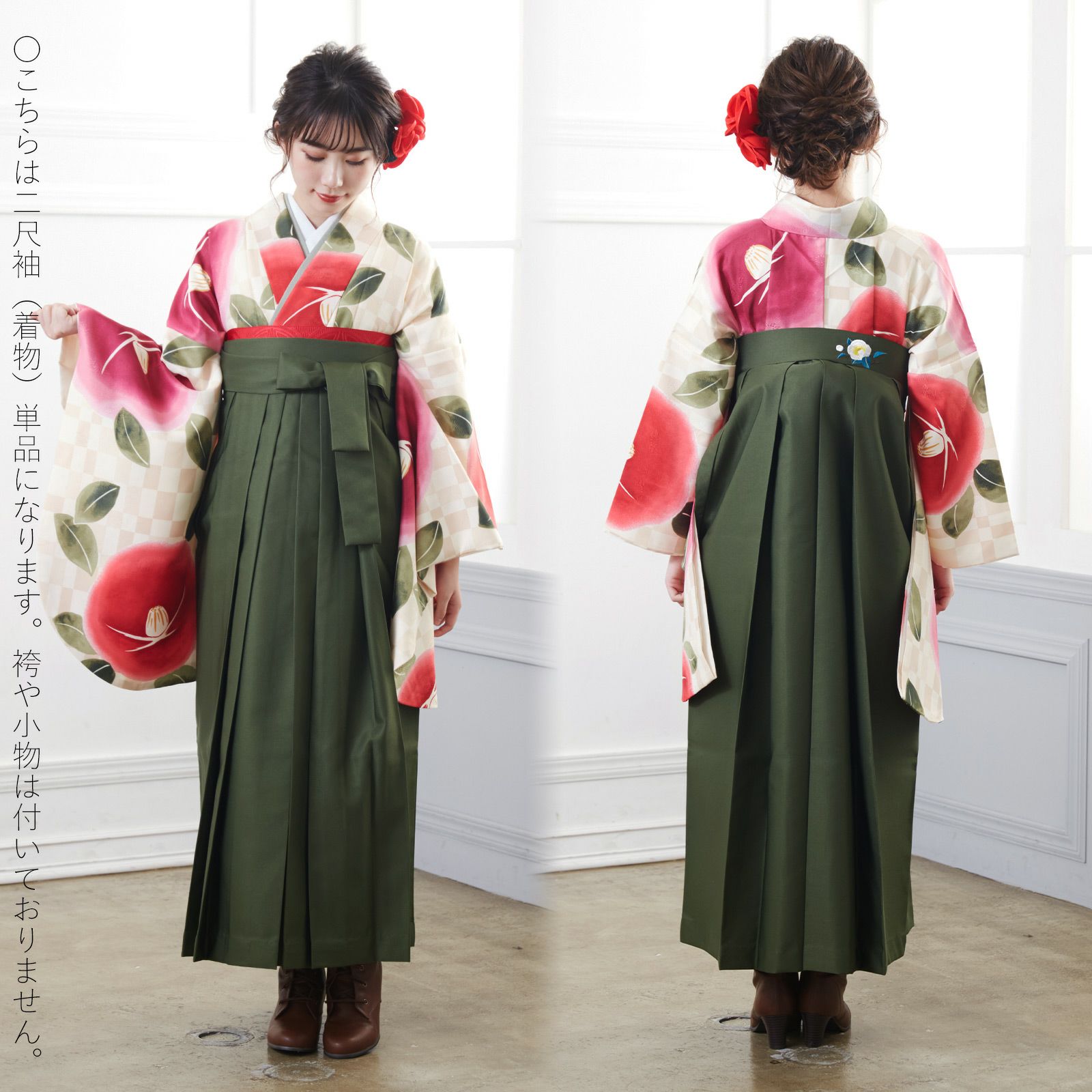 他の画像を見る 送料無料 卒業式に 二尺袖袴セット 卒業式 袴 レディース (卒業式応援10%OFFCOUPON1/22迄)袴 セット 卒業式 女性 4点セット「二尺袖:紺地 椿+袴:アイスグレー 椿の刺繍+袴下帯:ホワイト 麻の葉+襦袢」レディース 袴セット 二尺袖着物セット 着物 卒業 二尺袖 袴【メール便不可】 通常販売価格 ¥ 35,860 のところ きもの町価格 ¥ 31,174 税込 カートに入れる お気に入りに登録する