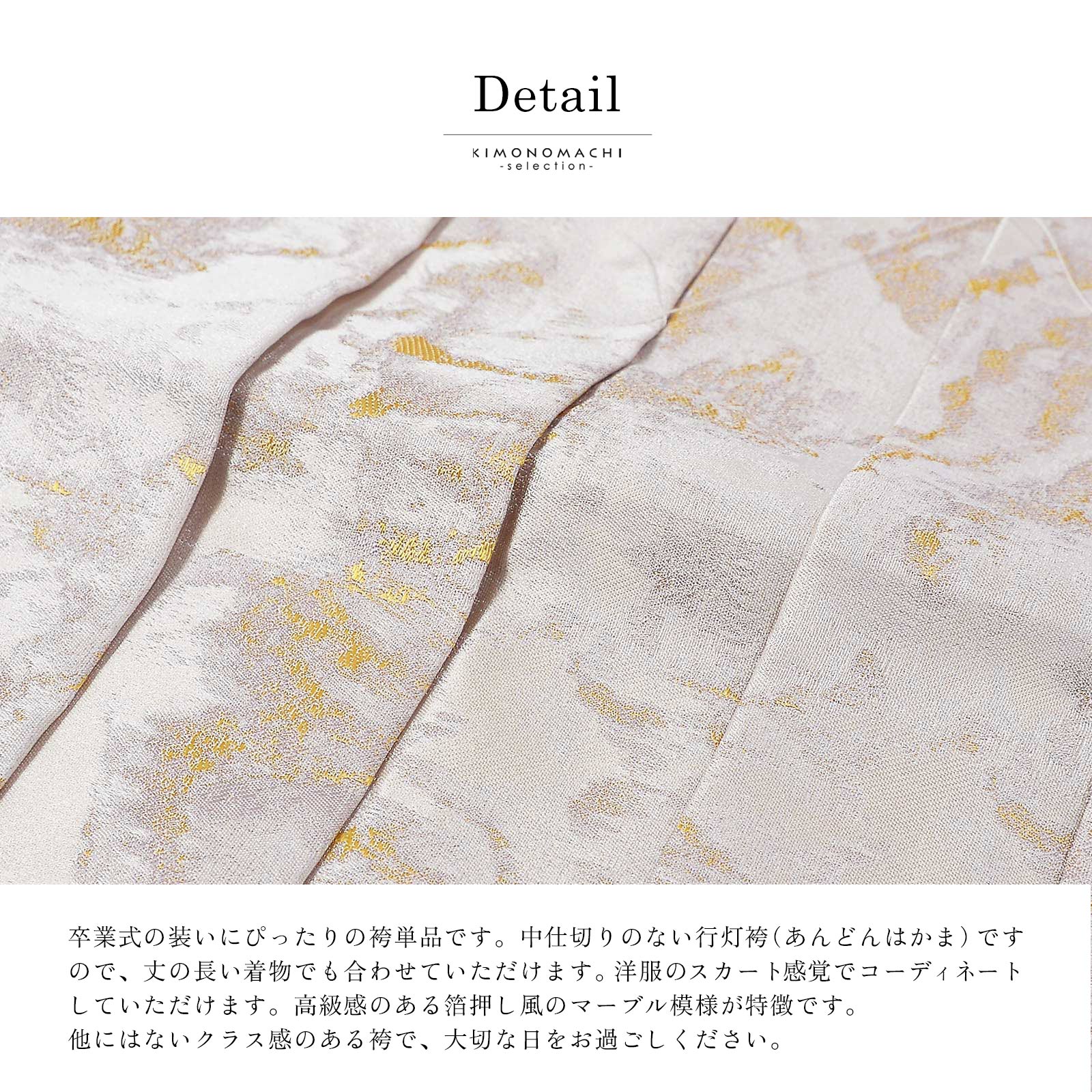 他の画像を見る 送料無料 卒業式の装いにぴったりの袴 箔風袴 単品「イエローゴールド・シャンパンゴールド・ホワイトゴールド」卒業式 袴 レディース 行燈袴 M・L・LL/2Lサイズ 女性用袴単品【メール便不可】 きもの町価格 ¥ 14,300 税込 在庫切れ カートに入れる お気に入りに登録する