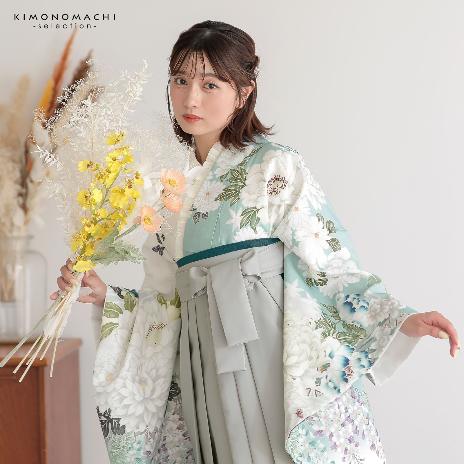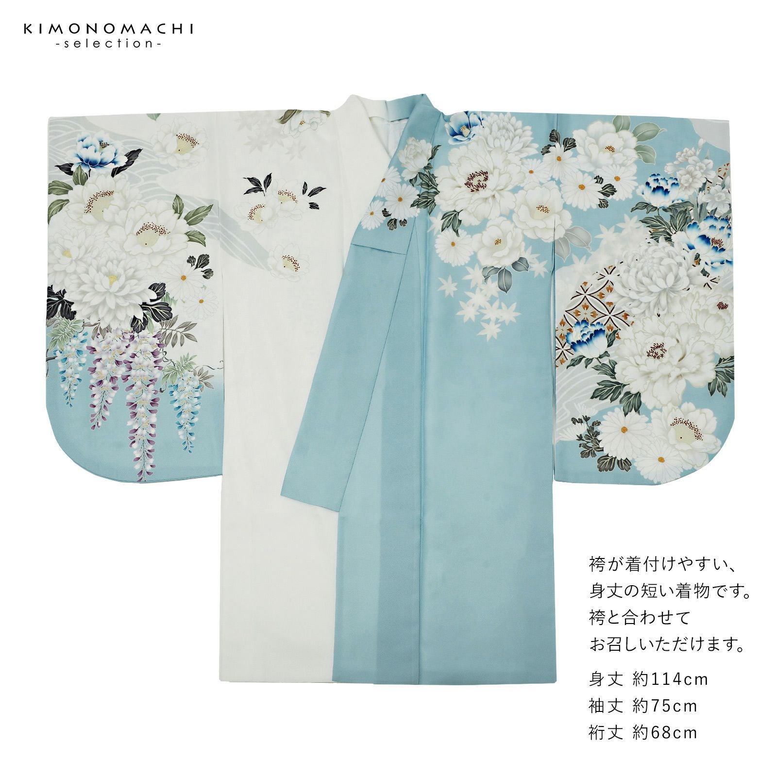 他の画像を見る 送料無料 袴 セット 卒業式 女性 4点セット「二尺袖:水色×白 菊、牡丹に七宝+袴:アイスグレー 椿+袴下帯:コバルト 麻の葉+襦袢」S/M/L/LL サイズ 卒業式 女性 レディース お仕立て上がり 袴セット 二尺袖着物セット 着物 二尺着物 袴【メール便不可】 きもの町価格 ¥ 62,034 税込 カートに入れる お気に入りに登録する