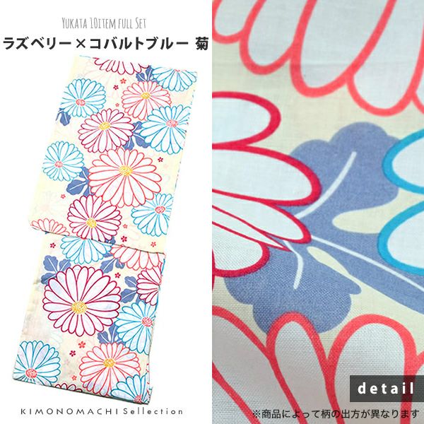 他の画像を見る 初心者さんも安心の着付け小物、浴衣飾り、下駄、バッグもついた浴衣フルセット 送料無料 着付け小物付き浴衣セット「ラズベリー×コバルトブルー 菊」浴衣10点セット レディース 夏祭り、花火大会に 女性浴衣セット 【メール便不可】 きもの町価格 ¥ 9,900 税込 在庫切れ 詳細を見る お気に入りに登録する