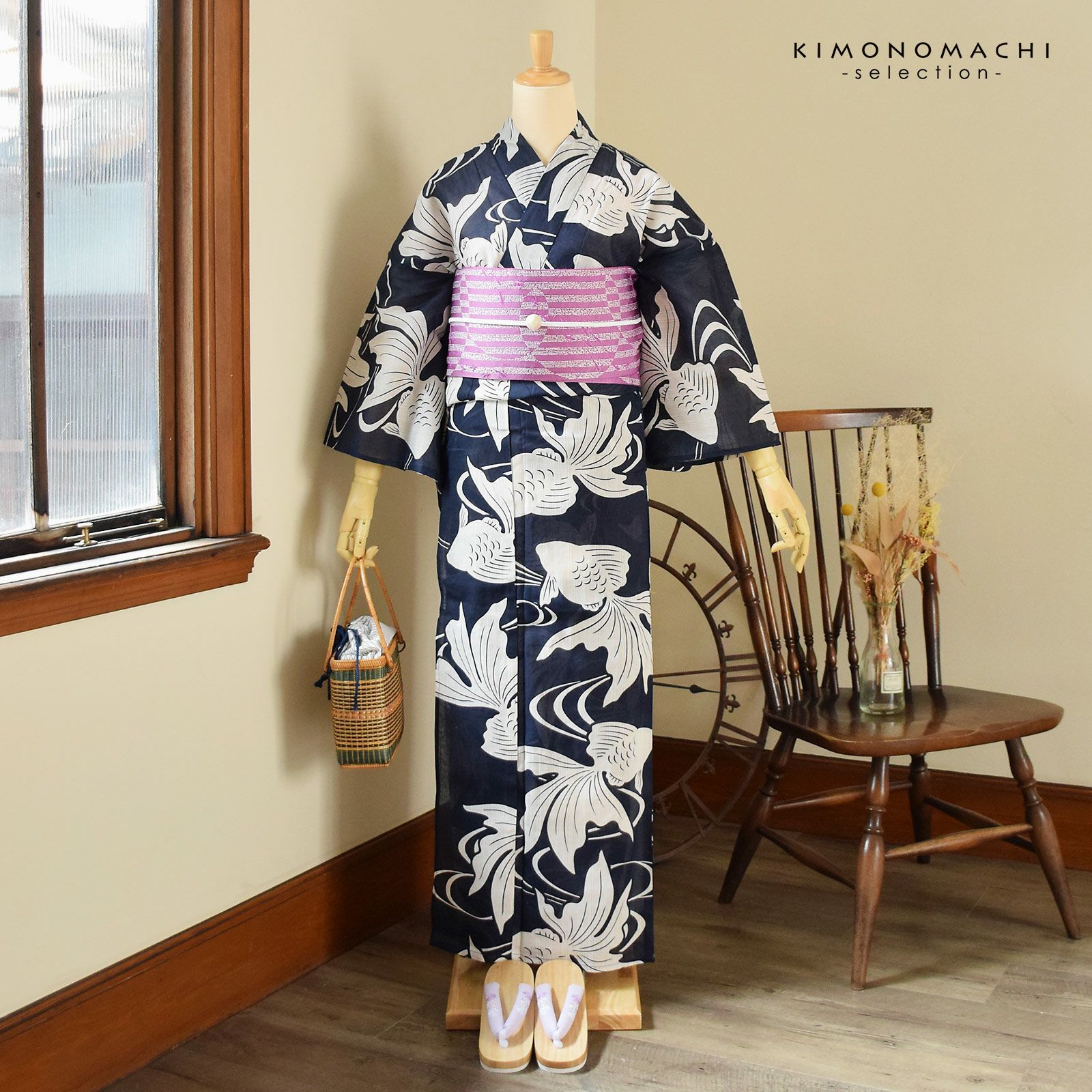 他の画像を見る 送料無料 浴衣と帯がコーディネートされたレディース浴衣セット 浴衣セット 浴衣と半幅帯の2点セット 「浴衣 紺地 金魚+半幅帯 水面(みなも) 若紫」 小袋帯 レディース Fサイズ 女性浴衣 綿麻浴衣 変わり織り浴衣 【メール便不可】 きもの町価格 ¥ 20,680 税込 在庫切れ 詳細を見る お気に入りに登録する