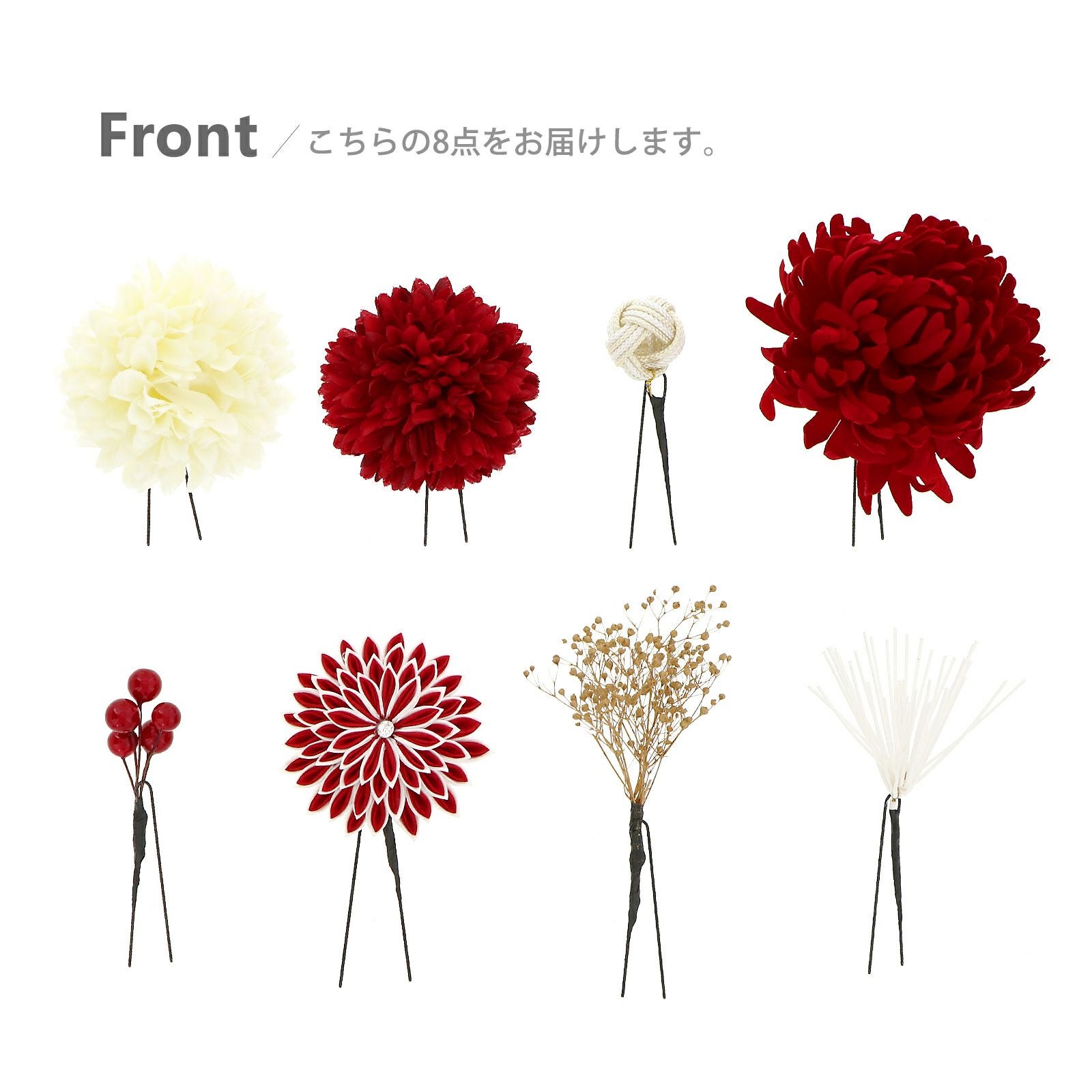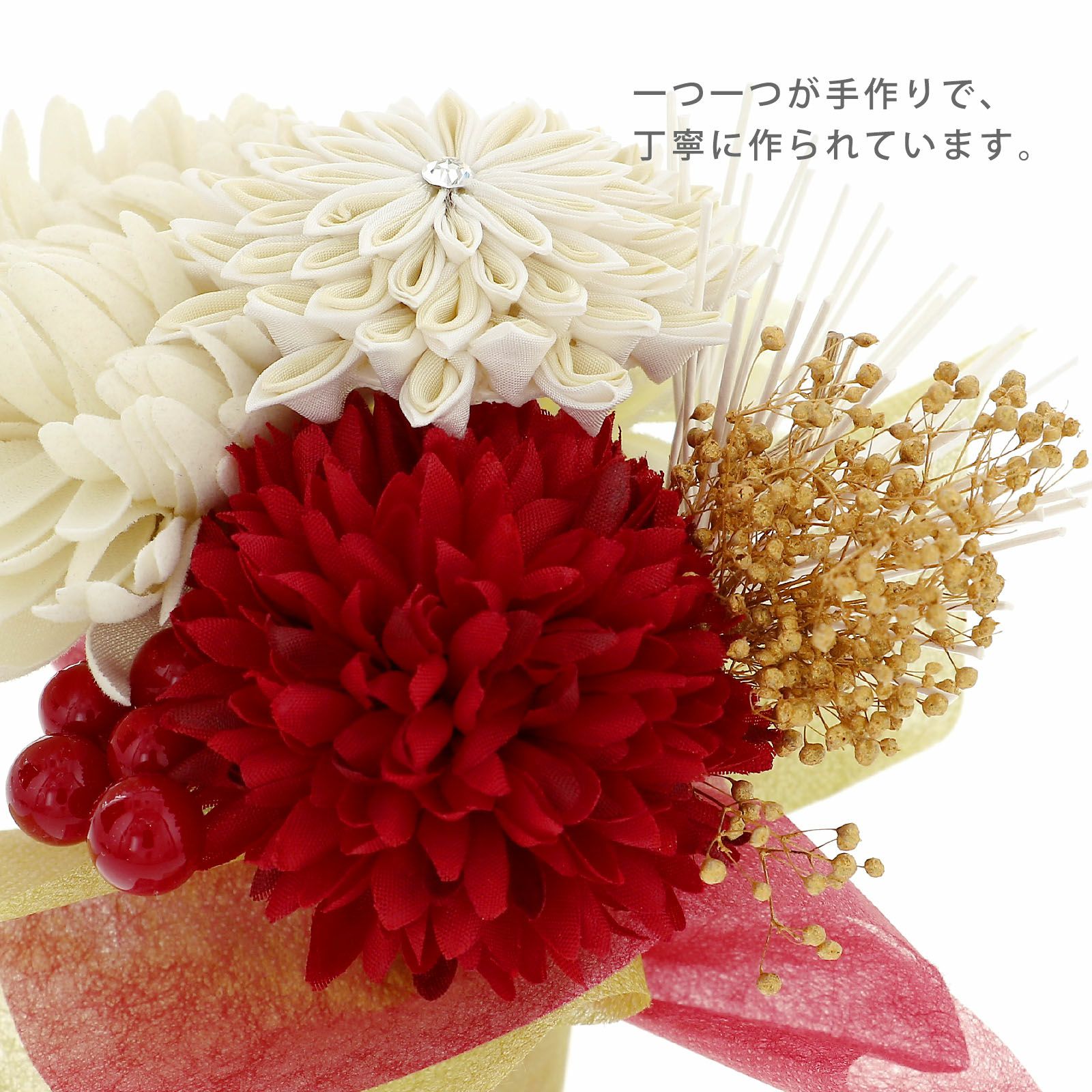 他の画像を見る 成人式の振袖に、卒業式の袴にも 華やかな振袖用髪飾り (卒業式応援75%SALE 2/19迄)成人式 髪飾り Uピン 8点セット 「花ごころ つまみのお花 マム 赤 白」全2種 ヘアアクセサリー 成人式 卒業式 謝恩会 振袖 袴【メール便不可】 通常販売価格 ¥ 9,680 のところ きもの町価格 ¥ 8,228 税込 販売期間 2026/02/05 18:00 〜 2026/02/19 17:59 カートに入れる お気に入りに登録する