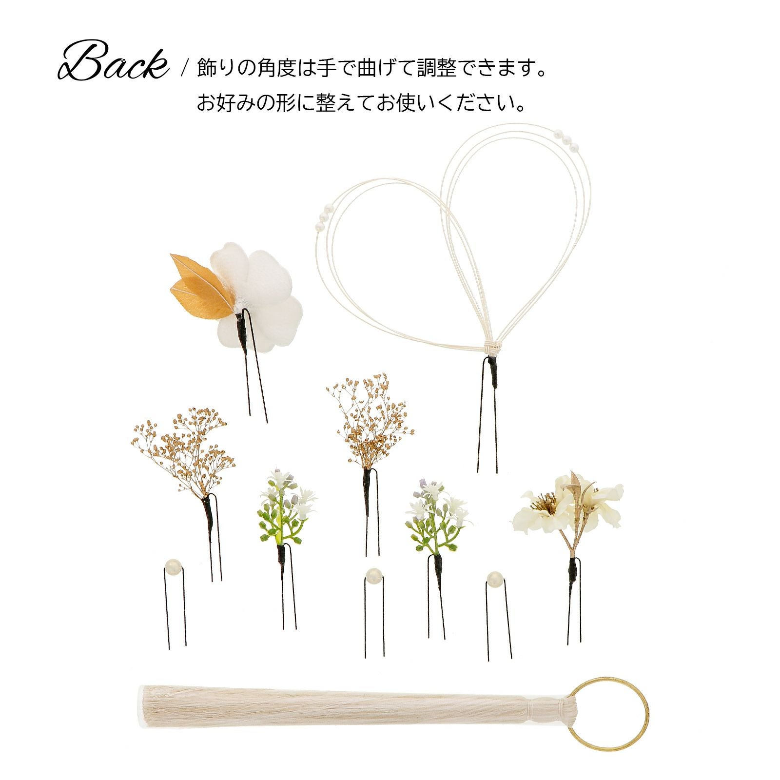 他の画像を見る 成人式の振袖に、卒業式の袴にも 華やかな振袖用髪飾り (卒業式応援75%SALE 2/19迄)成人式 髪飾り Uピン 11点セット「オフホワイト椿、水引にタッセル」振袖用髪飾り お花髪飾り 成人式 卒業式 結婚式 着物 日本製【メール便不可】 通常販売価格 ¥ 10,450 のところ きもの町価格 ¥ 8,882 税込 販売期間 2026/02/05 18:00 〜 2026/02/19 17:59 カートに入れる お気に入りに登録する