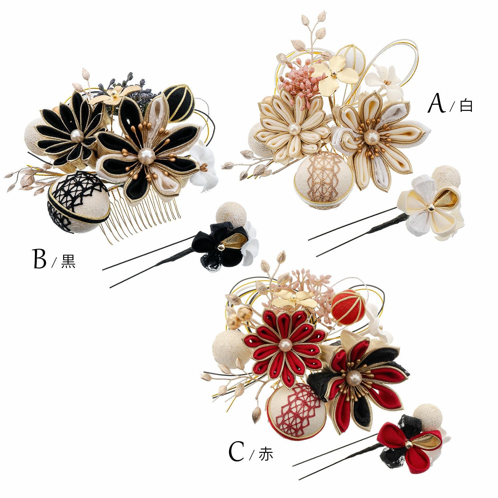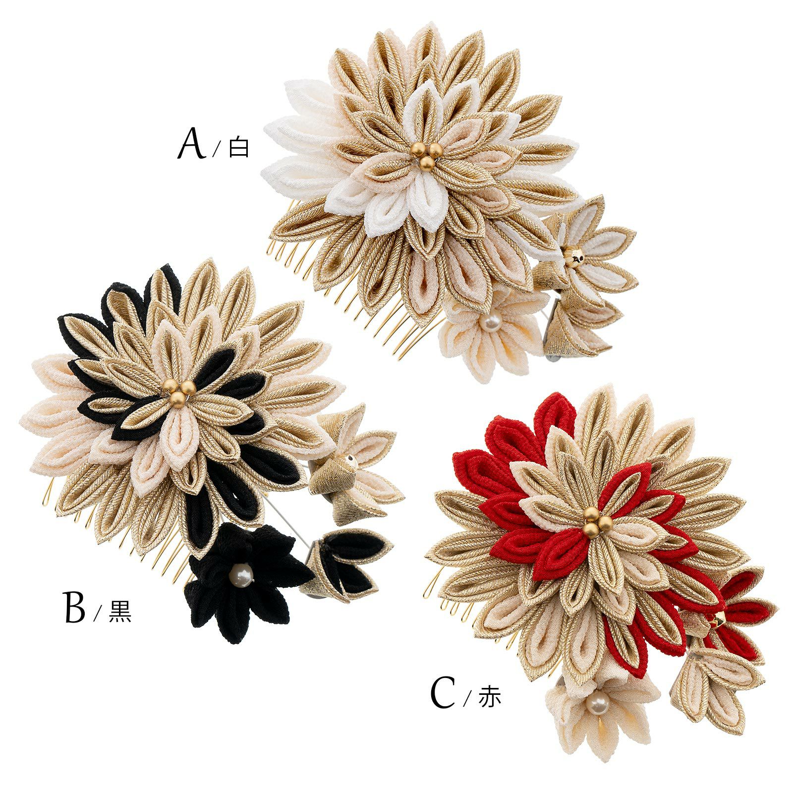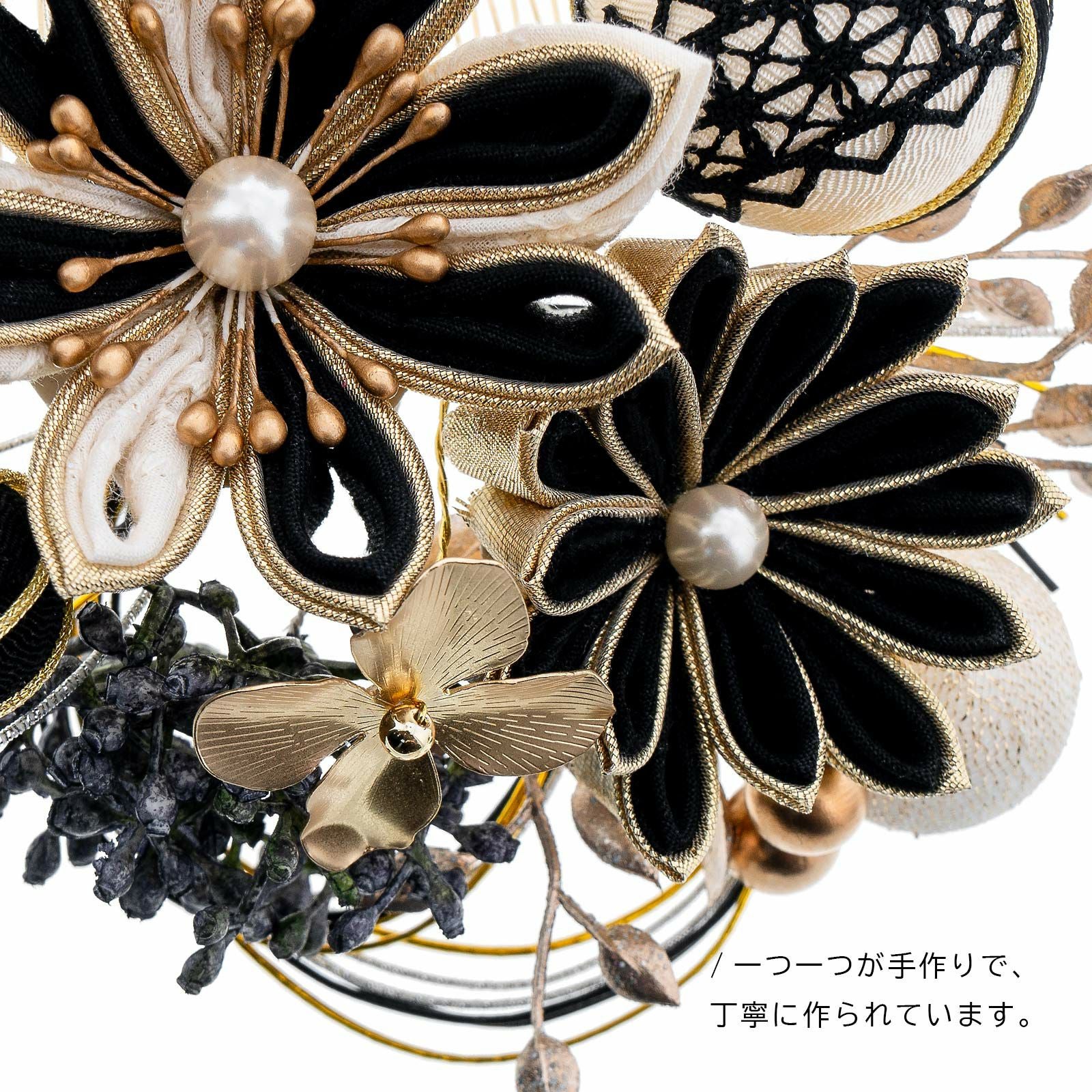 他の画像を見る 成人式の振袖に、卒業式の袴にも 華やかな振袖用髪飾り (卒業式応援75%SALE 2/19迄)成人式 髪飾り つまみ髪飾り コームとUピンの2点セット「白・黒・赤 花々と玉飾り」日本製 振袖用髪飾り お花髪飾り 成人式 卒業式 結婚式 着物【メール便不可】 通常販売価格 ¥ 10,450 のところ きもの町価格 ¥ 8,882 税込 販売期間 2026/02/05 18:00 〜 2026/02/19 17:59 カートに入れる お気に入りに登録する