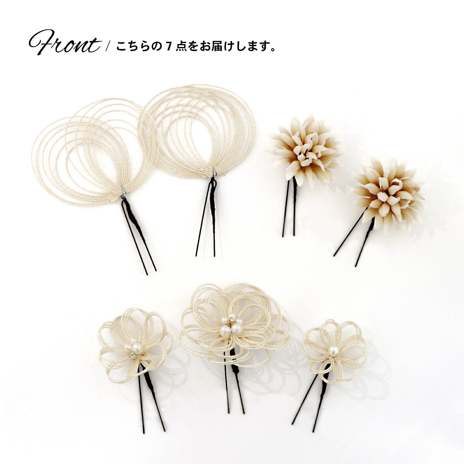 他の画像を見る 成人式の振袖に、卒業式の袴にも 華やかな髪飾り (卒業式応援75%SALE 2/19迄)成人式 髪飾り 卒業式 Uピンの7点セット「ダリアに水引の八重花 白系」日本製 水引き Uピン 振袖用髪飾り 結婚式 前撮り 後撮り 着物【メール便不可】 通常販売価格 ¥ 10,780 のところ きもの町価格 ¥ 9,163 税込 販売期間 2026/02/05 18:00 〜 2026/02/19 17:59 カートに入れる お気に入りに登録する