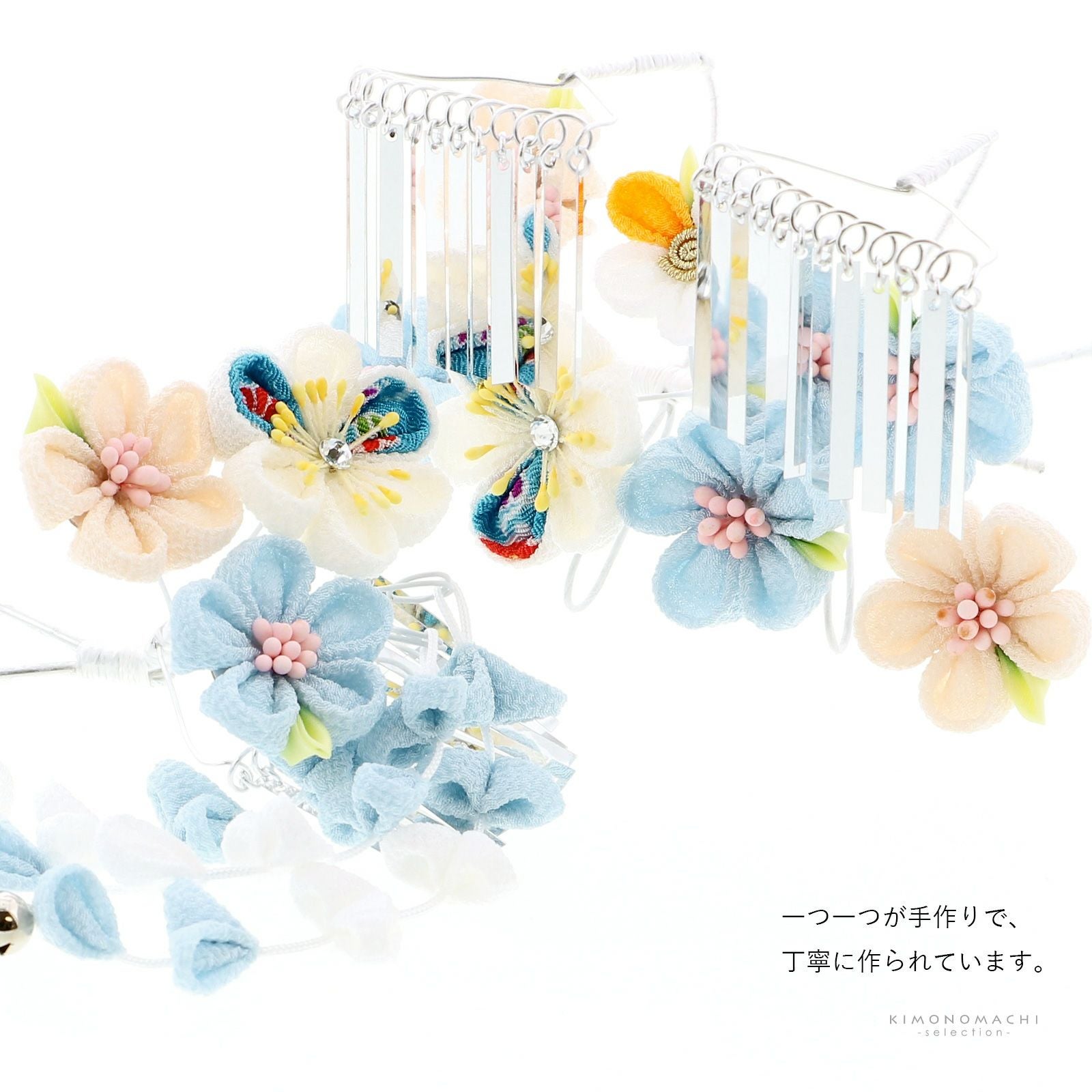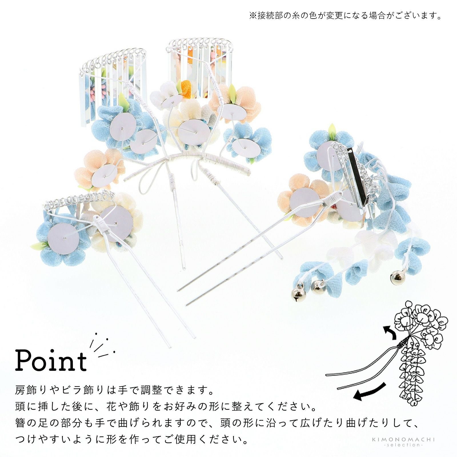 他の画像を見る 送料無料 七五三 髪飾りセット 七歳の女の子に 桃の節句、お正月にも 舞妓さんのような髪飾り 七五三 髪飾り 勝山かんざし 3点セット「水色 丸つまみのお花」7歳 つまみ細工 勝山セット 花簪 子供 女の子 女児【メール便不可】 きもの町価格 ¥ 16,500 税込 カートに入れる お気に入りに登録する