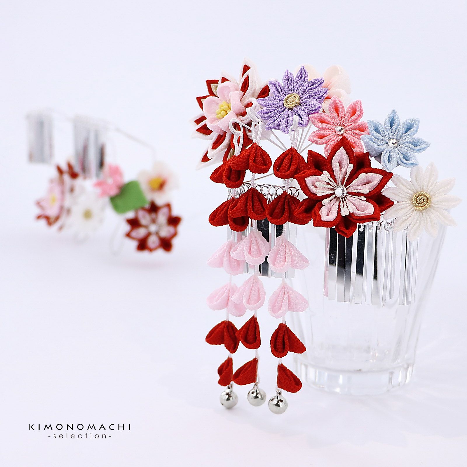 他の画像を見る 送料無料 七五三 髪飾りセット 七歳の女の子に 桃の節句、お正月にも 舞妓さんのような髪飾り 七五三 髪飾り 勝山かんざし ちんころ付き4点セット「赤×白 つまみのお花 剣菊 銀ビラ飾り 915」 7歳 つまみ細工 勝山セット 花簪 子供 女の子 女児【メール便不可】<H> きもの町価格 ¥ 19,800 税込 カートに入れる お気に入りに登録する