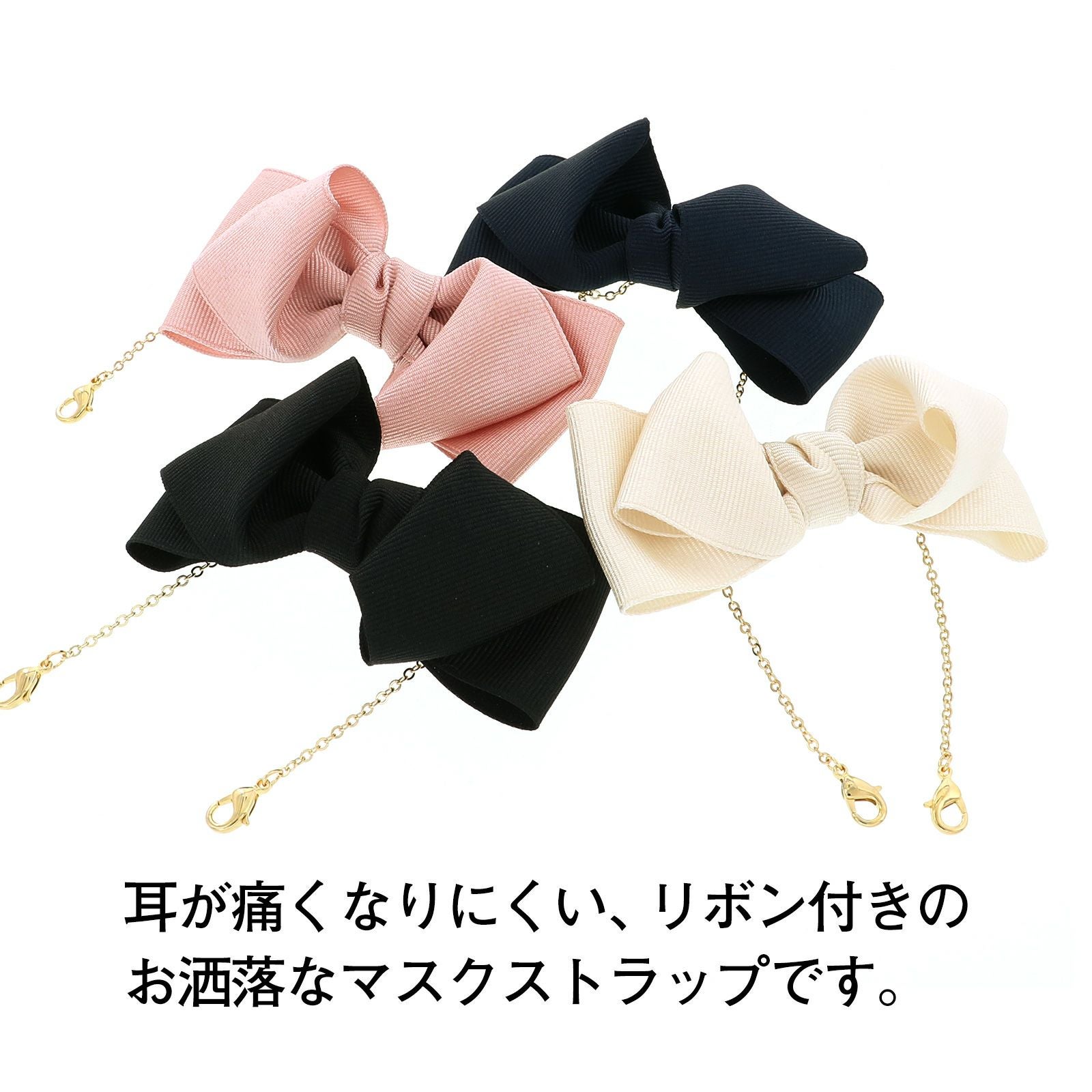 他の画像を見る メール便可 リボンとチェーンがかわいい!ヘアアクセサリーとしても使えるおしゃれなマスクバンド 【Prices down3】マスク バンド 耳が痛くならない 「リボン型マスクストラップ ブラック・ネイビー・ベージュ・ピンク 全4色」 マスク ストラップ マスク 耳紐 調節 ストッパー マスク リボン マスクアクセサリー マスクバンド マスクストラップ マスクストッパー 調整 ヘアアクセサリー 【メール便対応可】<R> きもの町価格 ¥ 1,157 税込 カートに入れる お気に入りに登録する