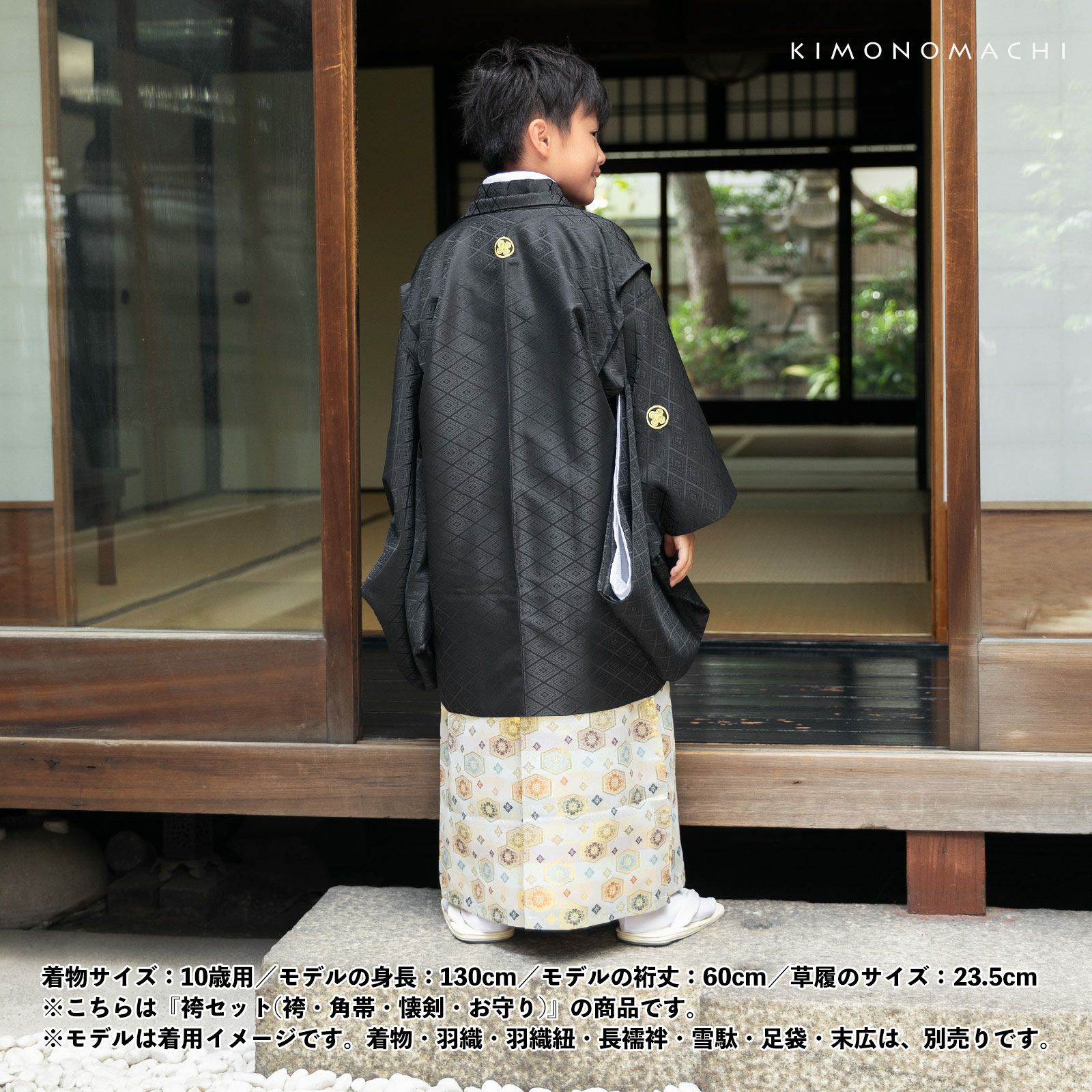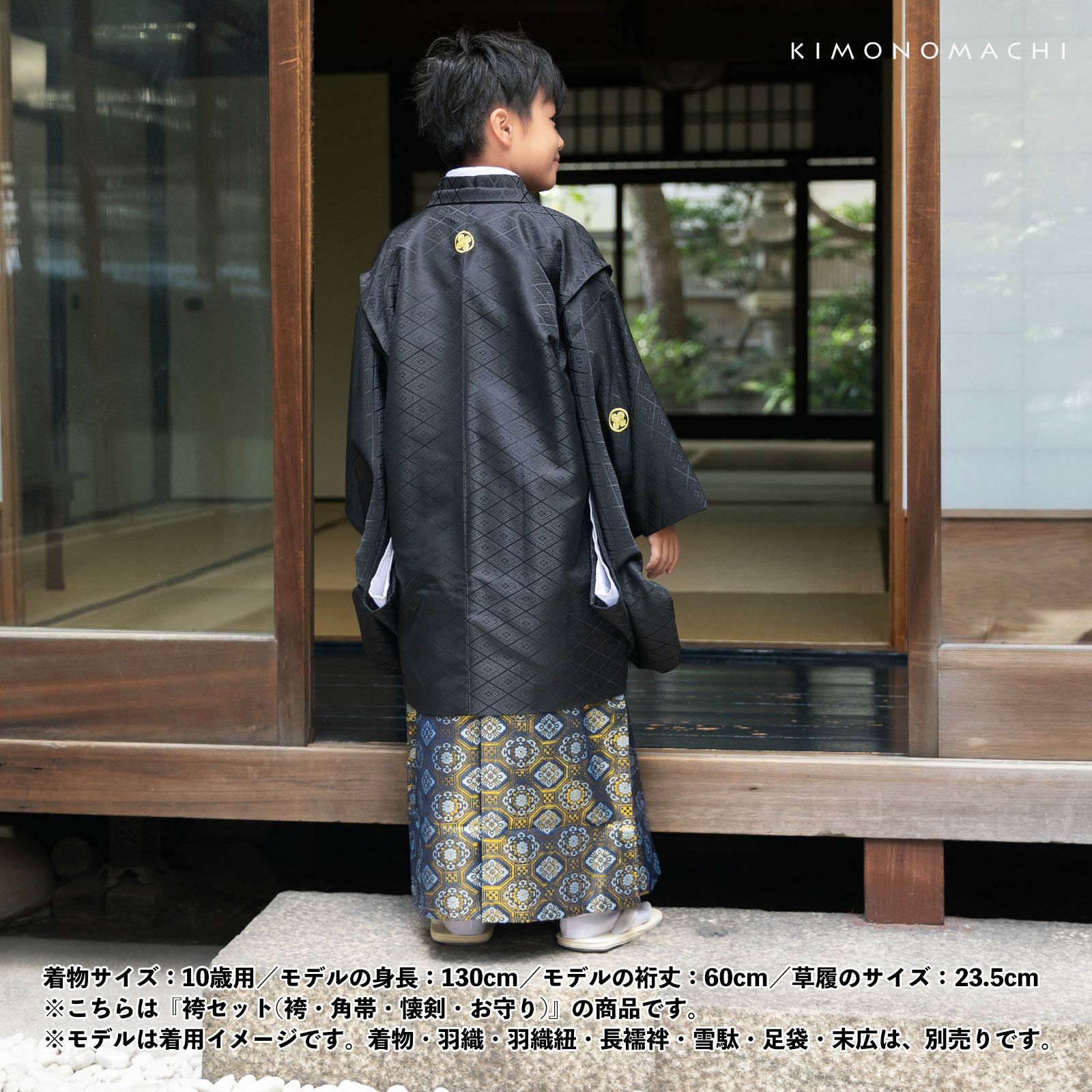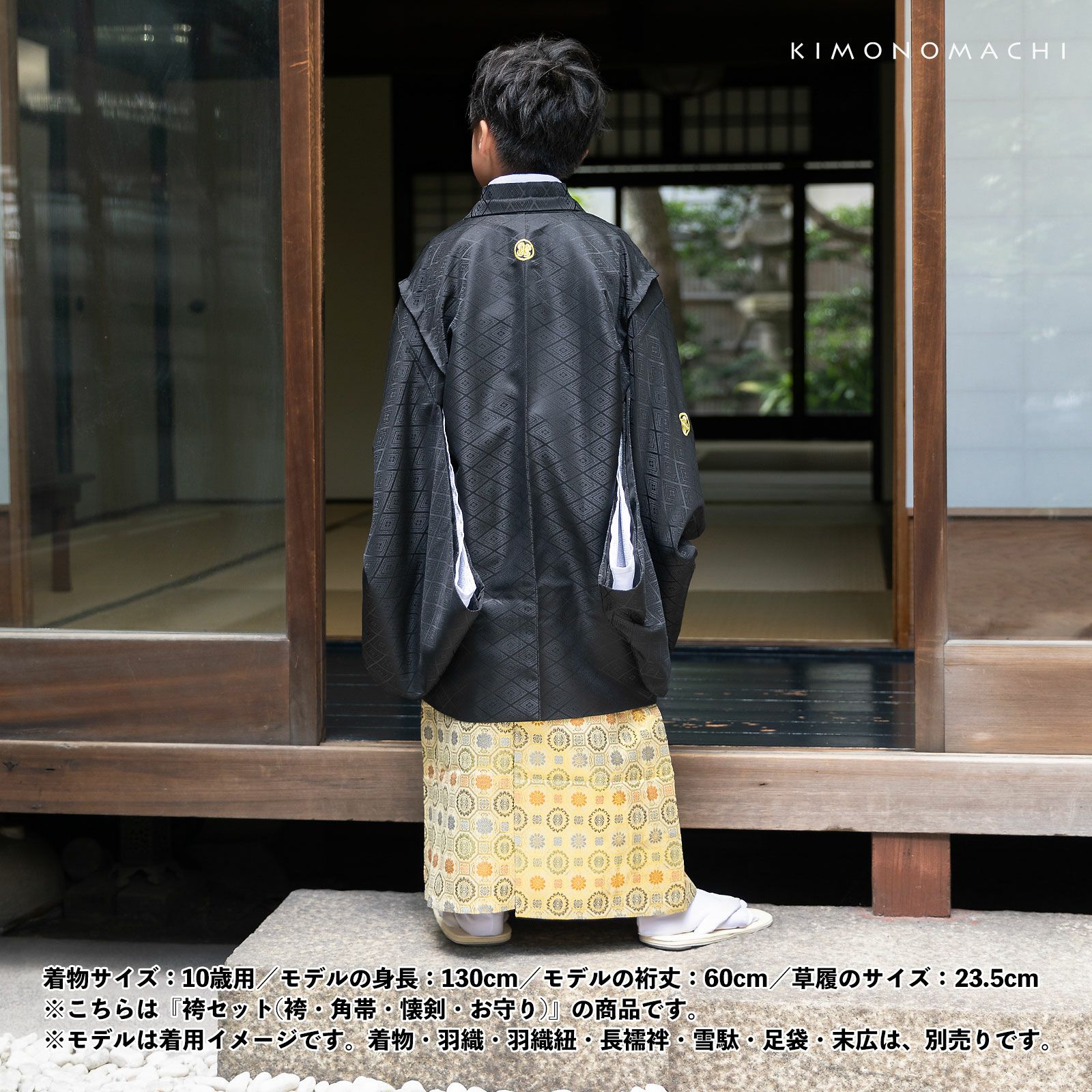 他の画像を見る 送料無料 男の子用 袴セット 男の子 10歳 13歳 金刺繍紋入り 袴が選べる羽織袴セット 「黒 菱、金刺繍紋 + 金襴袴」 ハーフ成人式 十三参り 卒業式 入学式 フルセット 10才 13才 男児用 着物セット 子供着物 【メール便不可】 きもの町価格 ¥ 39,550 税込 カートに入れる お気に入りに登録する
