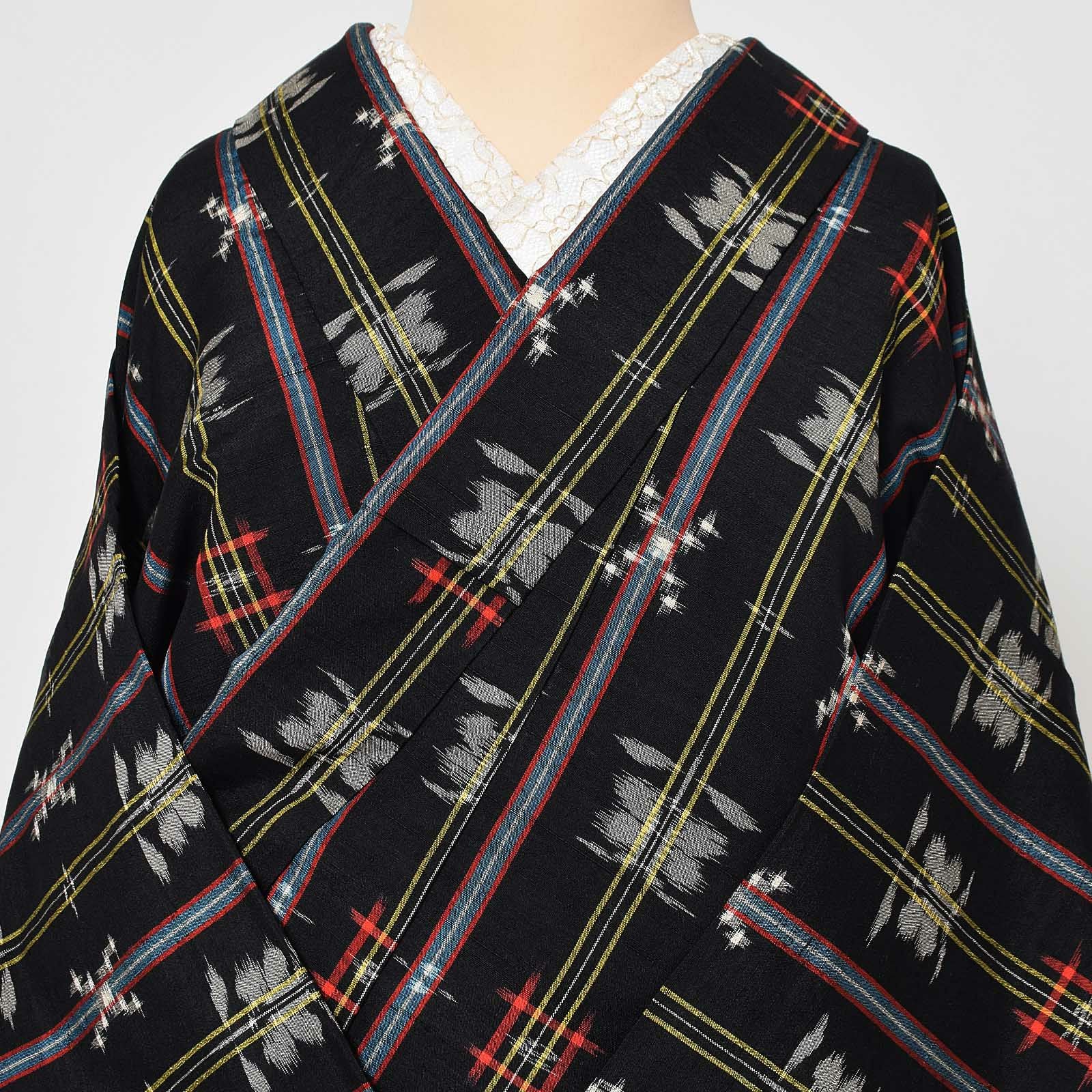 他の画像を見る 店頭あり 中古品 お洒落な大人のおでかけに 【中古品】仕立て上がり 袷着物 「黒地に赤青黄の縞 絣に蝶 幾何学風」 小紋 正絹 絣 【メール便不可】<T> きもの町価格 ¥ 3,300 税込 在庫切れ 詳細を見る お気に入りに登録する