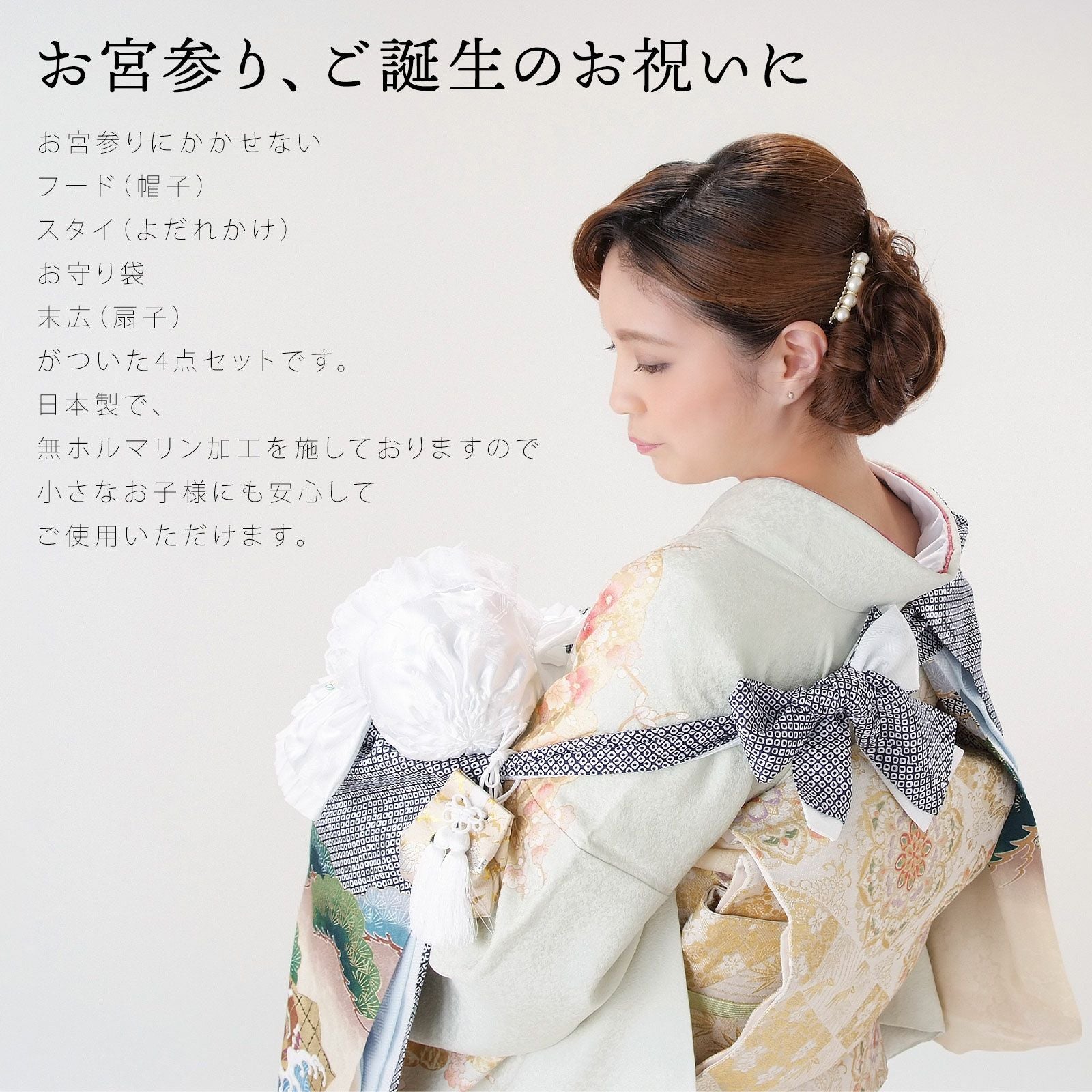 他の画像を見る お宮参りのお祝いに 出産祝いのプレゼントに最適 女の子・男の子 お宮参り用 フードセット 「白・男の子用 ピンク・女の子用 日本製」無ホルマリン加工 フード・鶴と松の刺繍入りよだれかけ・お守り袋・扇子のフード4点セット 宮参り小物 お宮詣り 男の子向け 女の子向け 男児用 女児用 【メール便不可】 きもの町価格 ¥ 4,290 税込 カートに入れる お気に入りに登録する