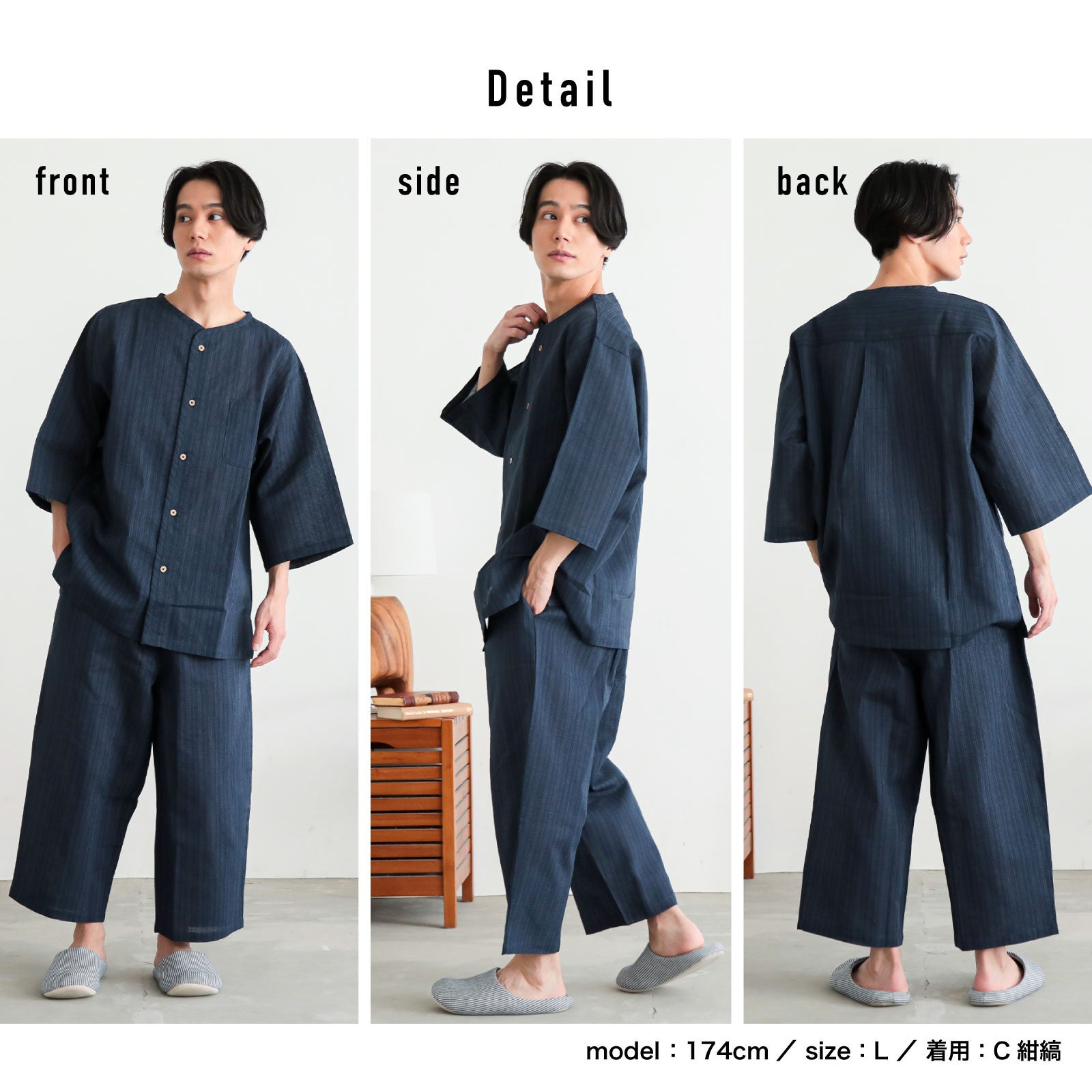 他の画像を見る 送料無料 リサイクル糸で地球と肌に優しい サステナブルなしじら生地ヘンリーネック甚平 メンズ甚平 ヘンリーネック甚平 リサイクル糸 「三色やたら縞、変わりかつお縞、金通縞、変わり縞」 SDGs サステナブル 綿ポリエステル M L LL おしゃれ 父の日 敬老の日 男性 プレゼント 涼やか 上下セット ルームウェア 部屋着 セットアップ じんべい じんべえ 親子コーデ【送料無料】【メール便不可】ss2603men10 きもの町価格 ¥ 3,960 税込 詳細を見る お気に入りに登録する