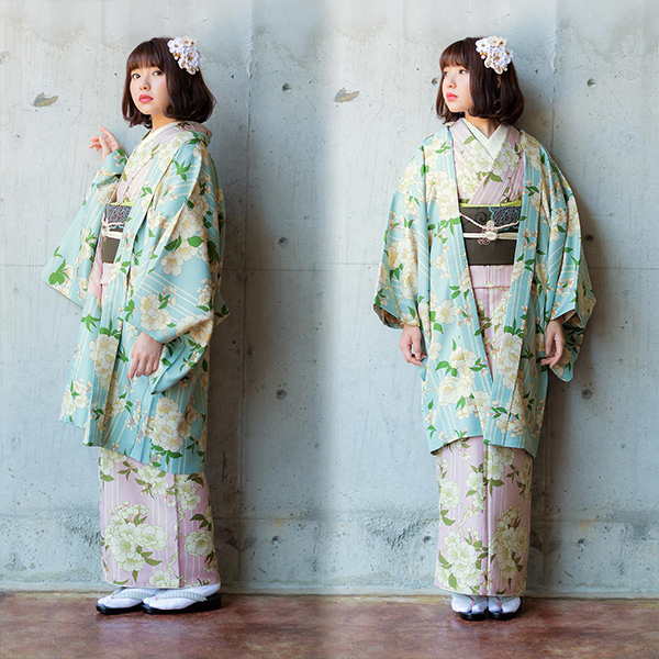 袷着物+京袋帯+帯揚げ+帯締め+羽織+羽織紐のセットです。