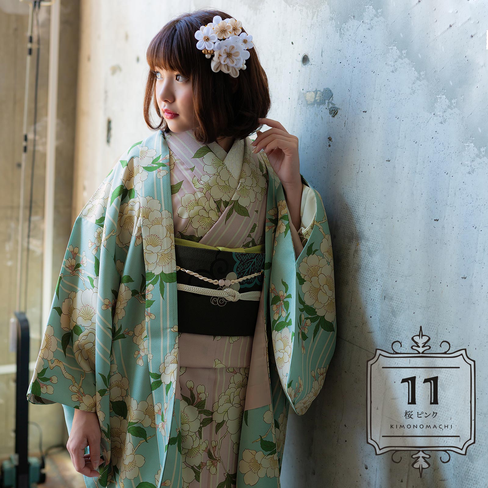 袷着物+京袋帯+帯揚げ+帯締め+羽織+羽織紐のセットです。
