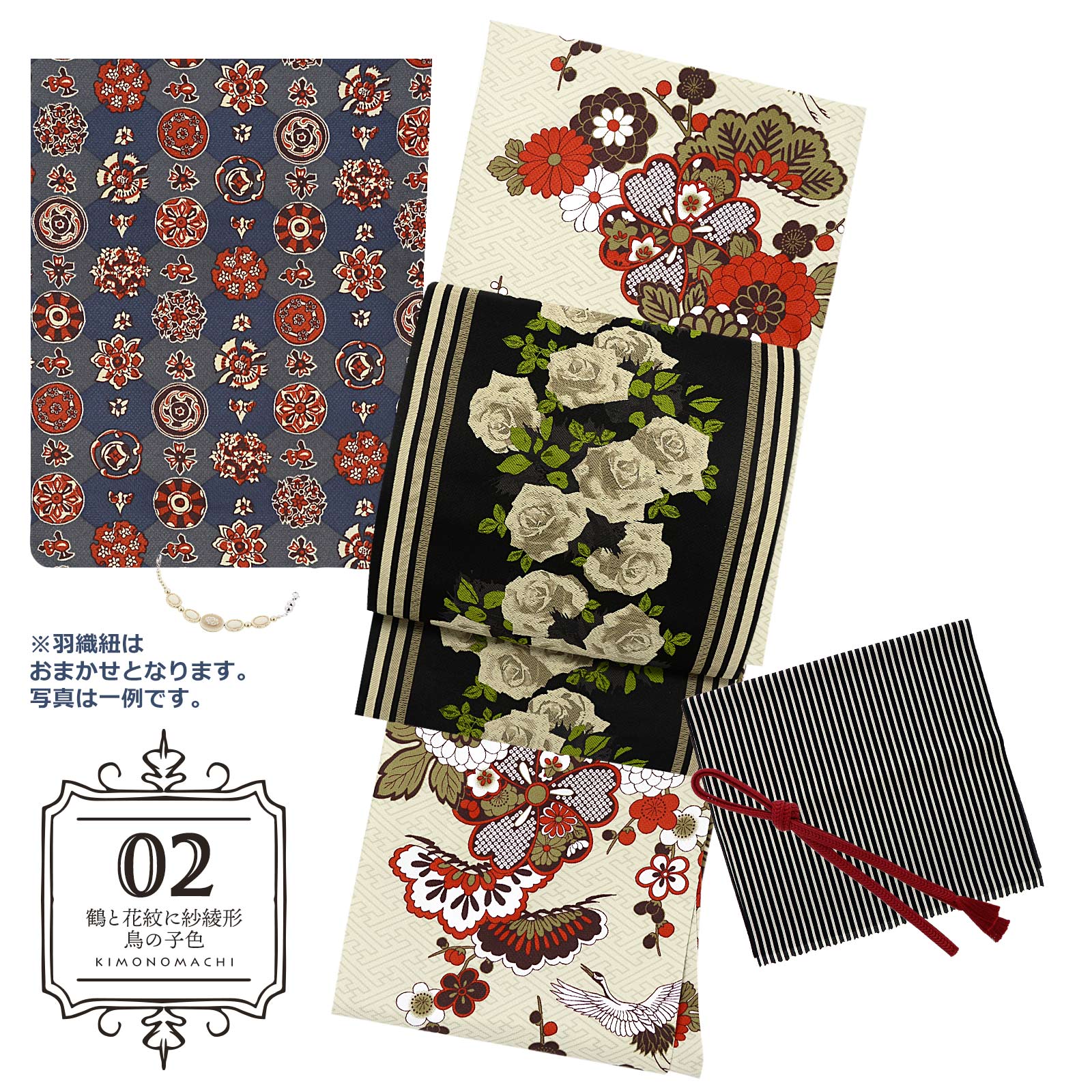 袷着物+京袋帯+帯揚げ+帯締め+羽織+羽織紐のセットです。