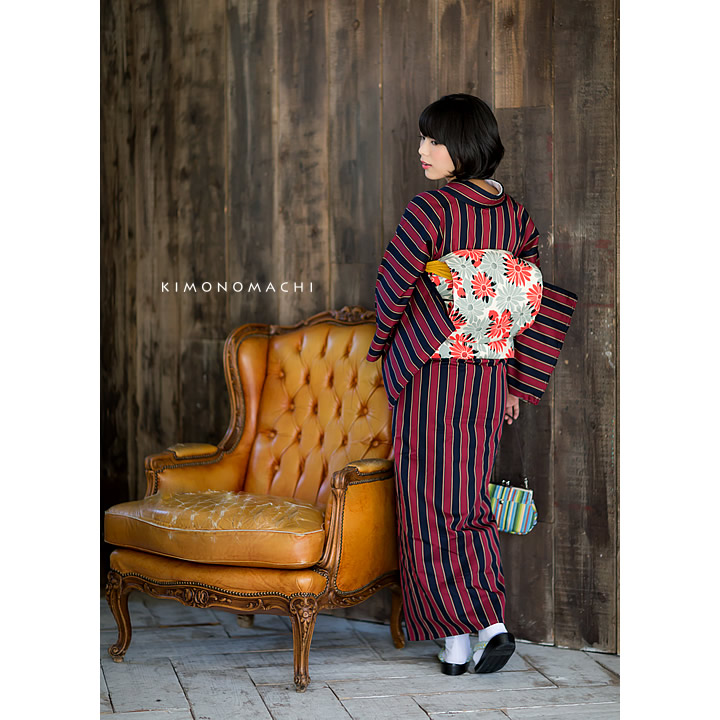 着こなしやすいシックな色合い。明るい色の帯も、同系色の帯も似合います。