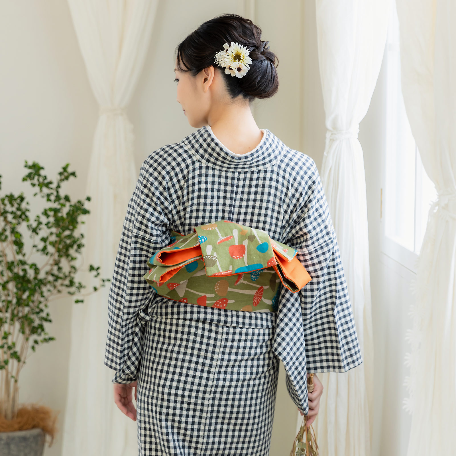 木綿着物と木綿半幅帯のコーデ済み2点セットです。