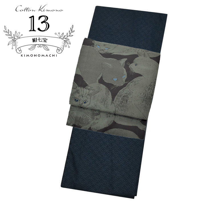木綿着物と木綿京袋帯のコーデ済み2点セットです。