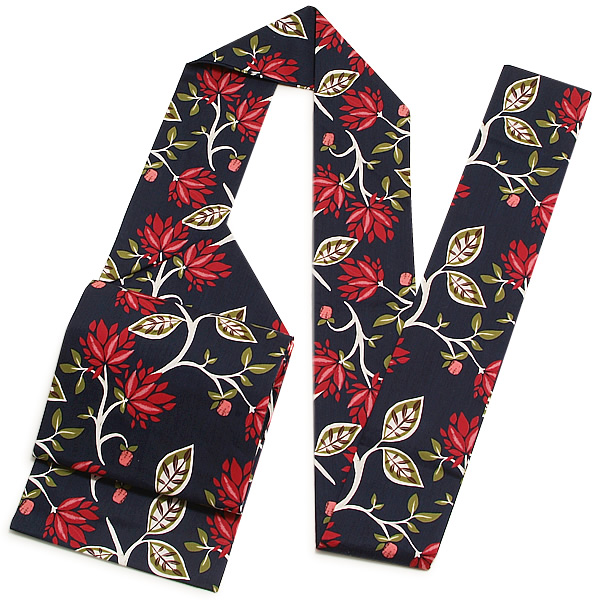 木綿名古屋帯:ネイビーブラック モダンフラワー(034853)