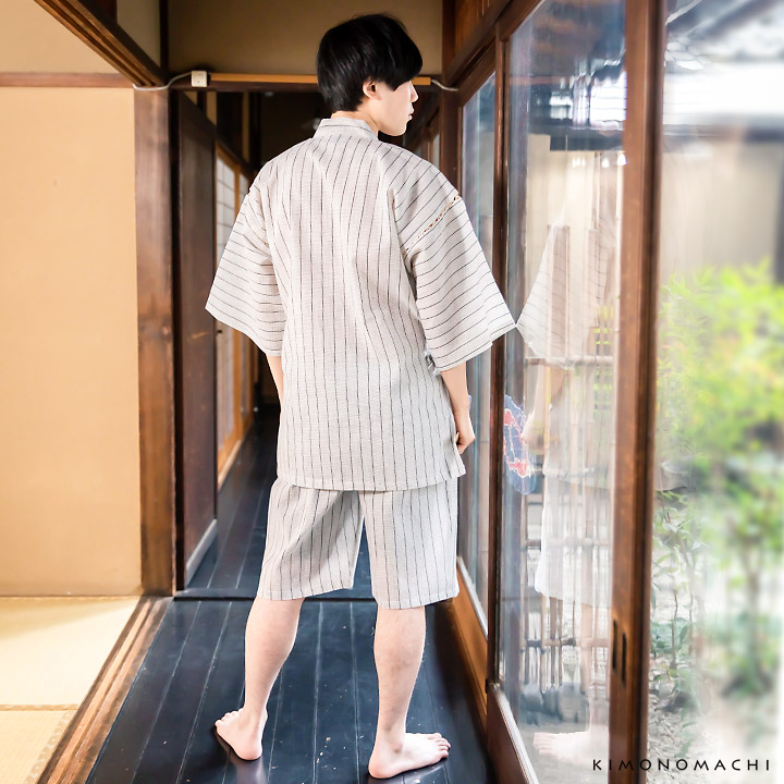 さらりとした着心地の綿麻素材の、高級感ある変わり織り生地で、見た目にも涼しさを感じさせるよう透け感がある織り方となっております。
