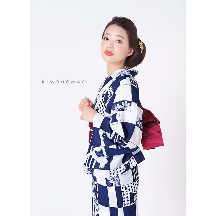 こちらの浴衣は変わり織り生地で、透け感がございます。浴衣の下には浴衣スリップのご着用をおすすめいたします。