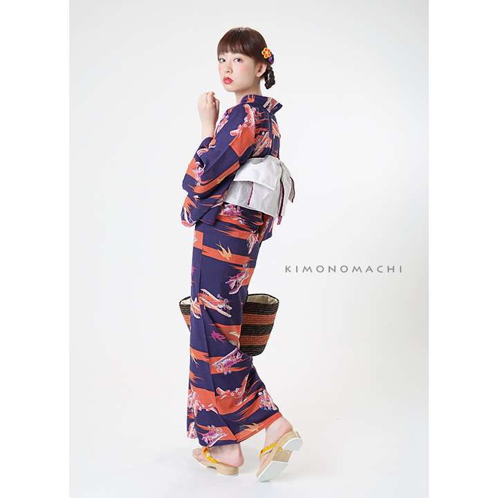こちらの浴衣は変わり織り生地で、透け感がございます。浴衣の下には浴衣スリップのご着用をおすすめいたします。