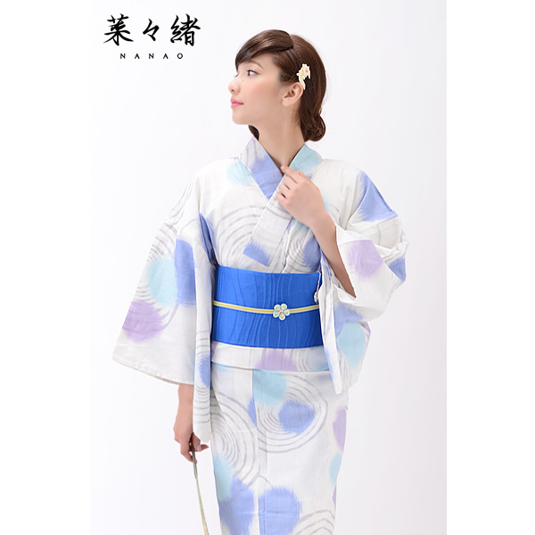 絣風の水玉模様が爽やかなブルーですっきりと夏らしい浴衣