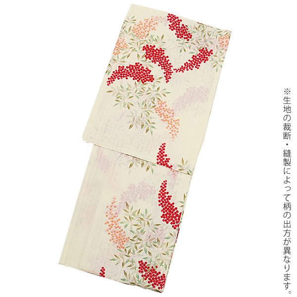 クリーム地にボルドーの南天模様が上品で大人かわいい浴衣