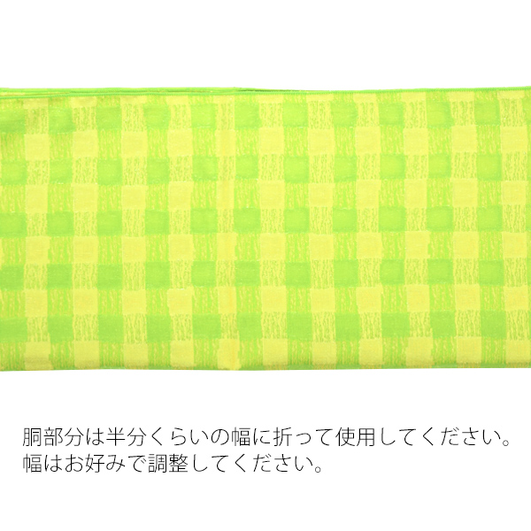 京都きもの町オリジナルの浴衣帯(兵児帯)です。柔らかな兵児帯タイプですので、結びやすく、ふんわりとしたリボンで、華やかに結んでいただけます。柔らかな生地感なので、キッズ、ジュニアの浴衣にも。【カラー】浅いイエロー、明るいグリーンのチェック柄。明るさがありつつも、どこか落ち着いた色目で、お着物に馴染みやすく、合わせやすい色合い。