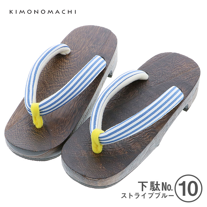 台は焼桐の焦げ茶色。白色と薄水色の縦ストライプ模様の鼻緒が、爽やかで可愛らしい雰囲気です。【サイズ】